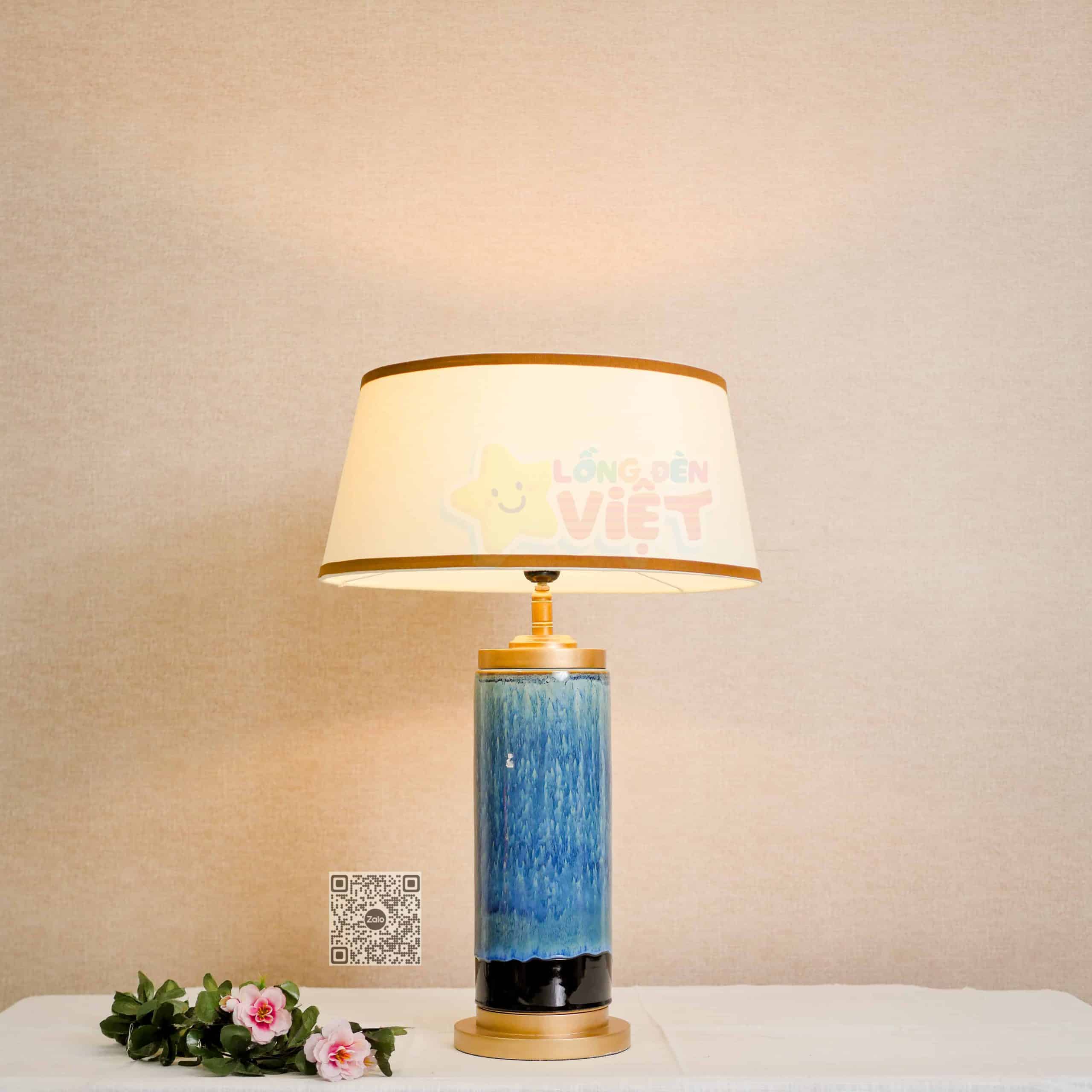 – Chất liệu: bình sứ, khung chao đèn bằng sắt, mica bọc vải đũi