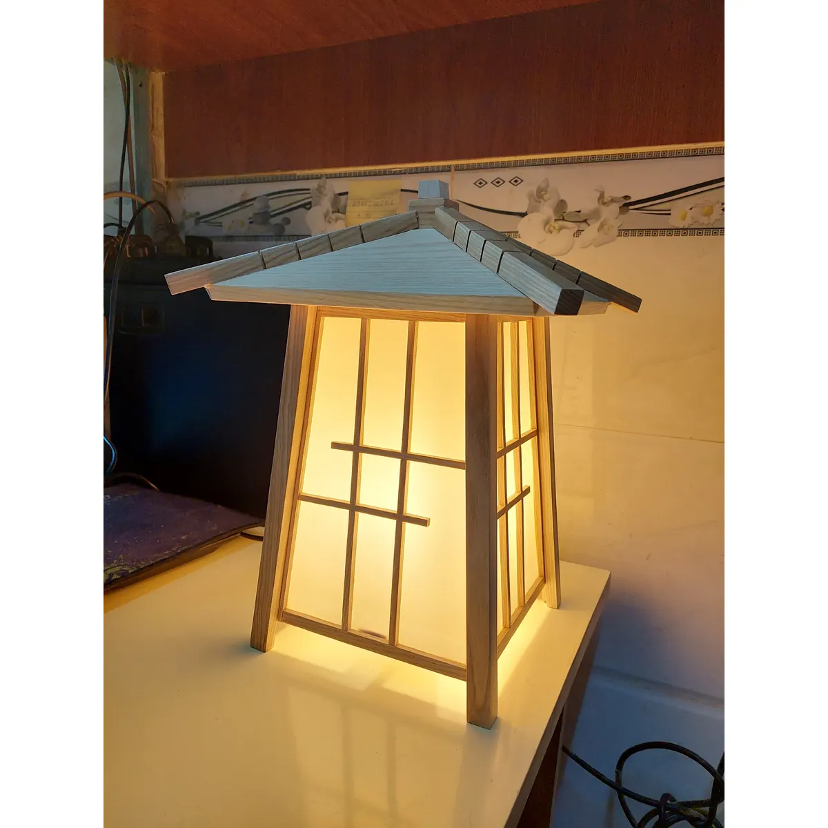 Đèn bàn gỗ tạo hình kiến trúc nhà Nhật Bản truyền thống, phong cách zen tĩnh lặng phù hợp bàn làm việc và tủ đầu giường.