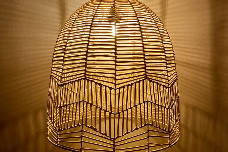 5. Đèn Mây Tre Kết Hợp Khung Sắt