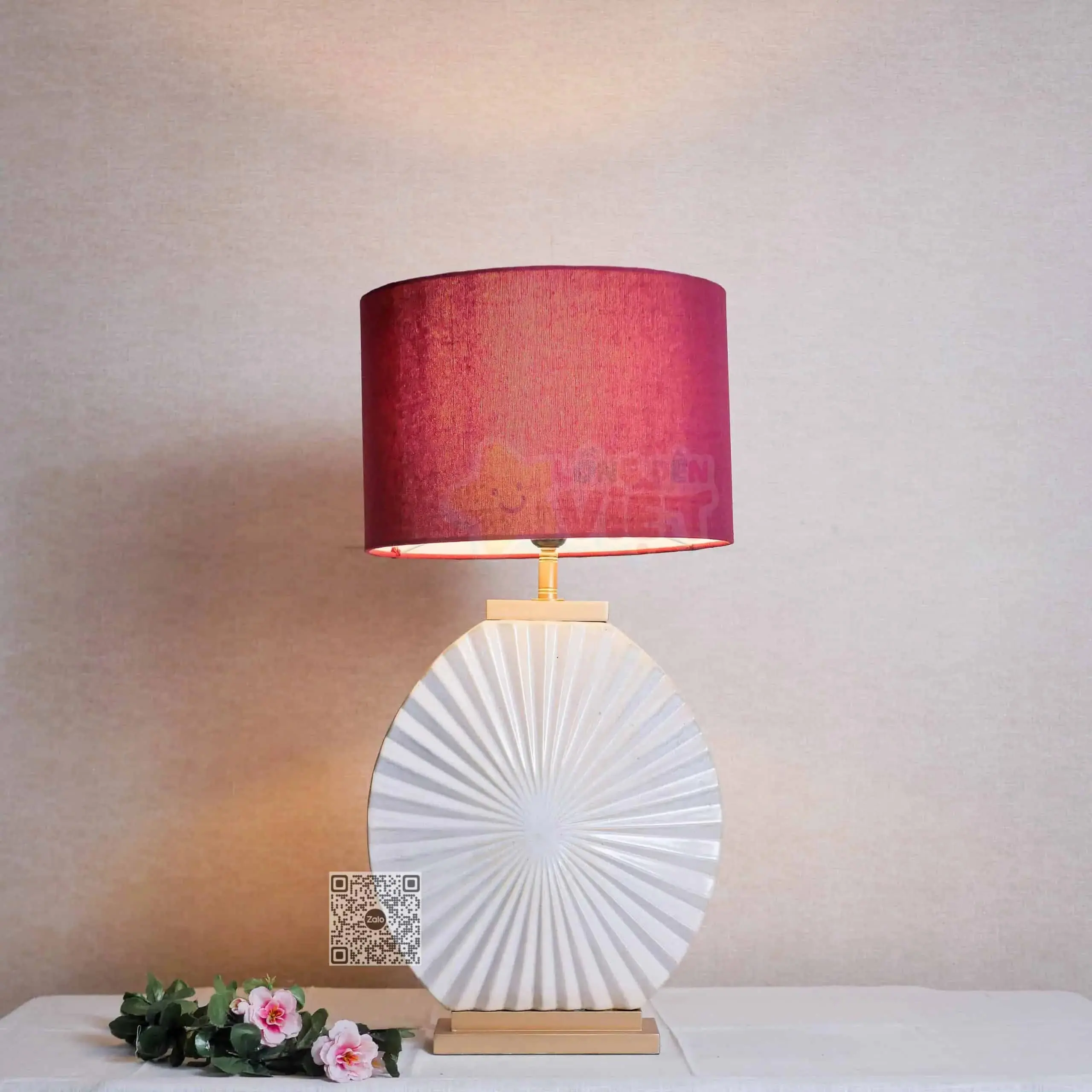 – Chất liệu: bình sứ, khung chao đèn bằng sắt, mica bọc vải đũi – Hoạ tiết trên vải: không – Màu sắc: đỏ đô – Kích thước: 35 x 68cm (đường kính chao đ